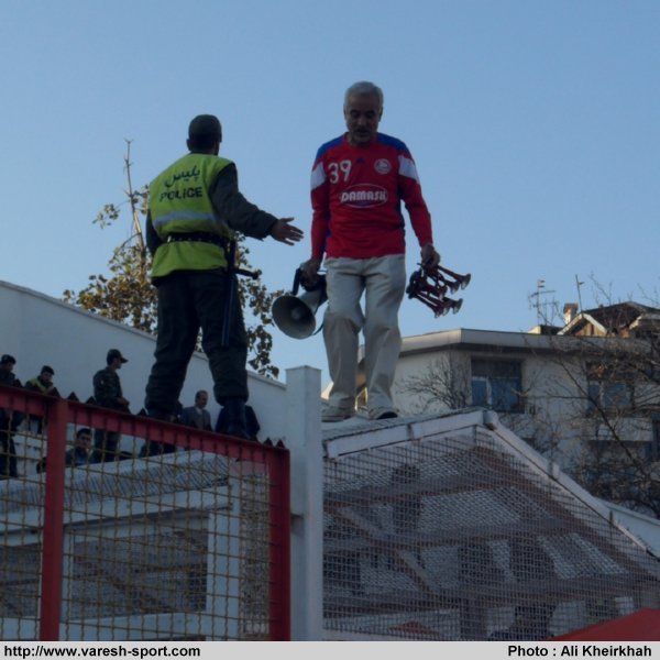 صادق بوقچی داماش که با ممانعت نیروی انتظامی جهت قرار گرفتن بر روی فنس ورودی بازیکنان مواجه شد