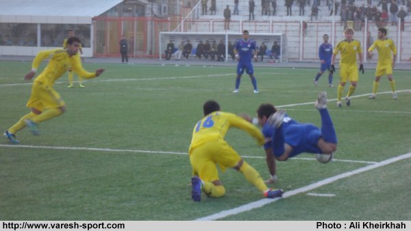 لحظه ارسال حسین ابراهیمی که در نهایت این ارسال با بغل پای غلامی به تک گل داماش تبدیل می شود