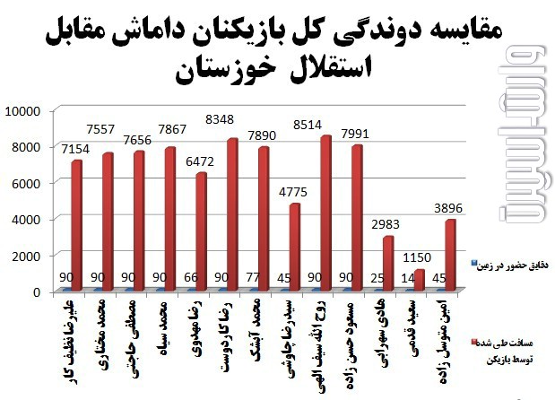 وارش اسپرت – تارنمای هواداران داماش گیلان: میزان دوندگی بازیکنان داماش گیلان در دو بازی خانگی برابر استقلال خوزستان و ذوب آهن اصفهان توسط "گروه آنالیز میلیمتر" بررسی شد و در اختیار وارش اسپرت قرار گرفت که در این مطلب مشاهده خواهید کرد.