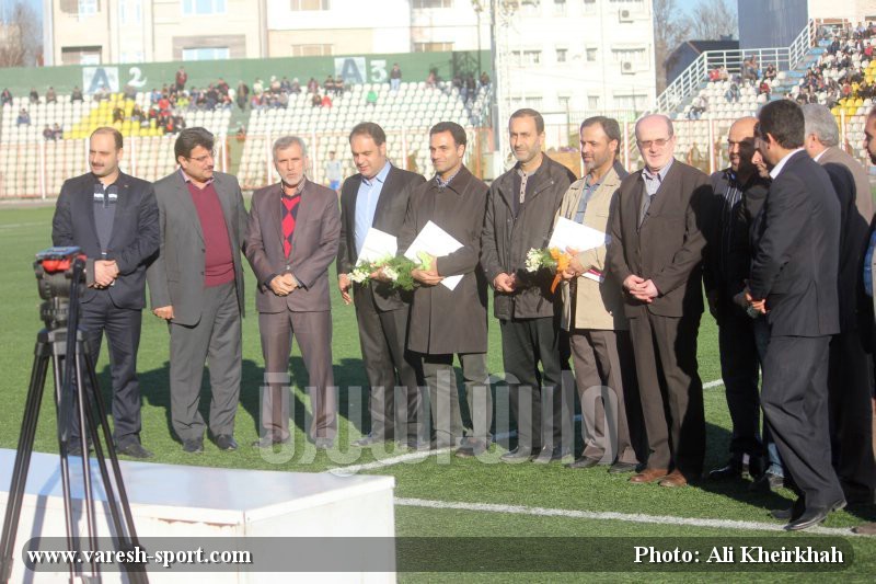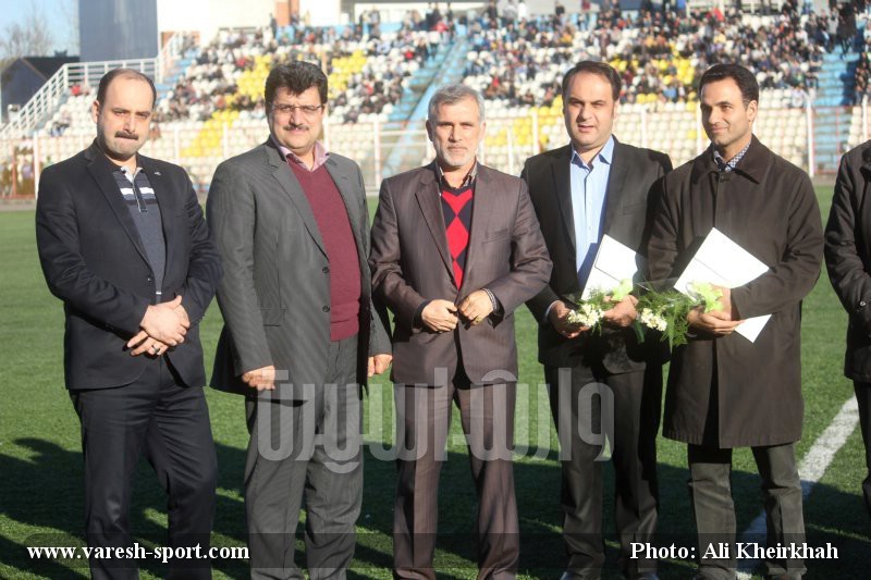 از چپ به راست: الماسخاله رئیس هیات فوتبال گیلان، مهدوی فرماندار شهرستان رشت، لاهوتی نماینده مردم لنگرود در مجلس، رهنما مدیرکل ورزش و جوانان استان گیلان، مهدی پور شورای شهر لنگرود.