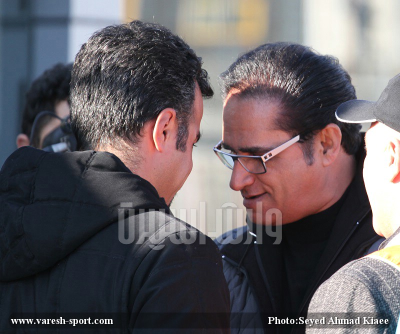 خوش وبش امید هرندی سرمربی داماش و محمدرضا مهاجری سرمربی سیاه جامگان در ابتدای مسابقه…