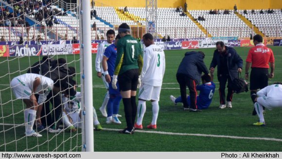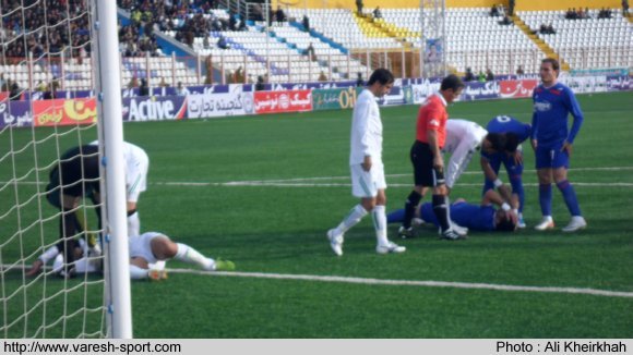 برخورد جهانگیر عسگری و مدافع ذوب آهن از ناحیه سر و مصدومیت هر دو بازیکن