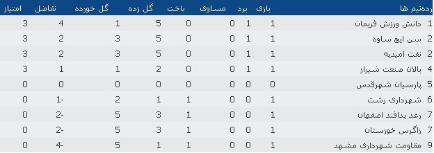 جدول رده بندی گروه ب در پایان هفته نخست به این شرح است: