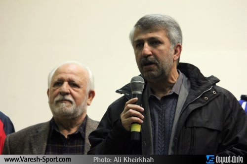 محمود مباحی رئیس شورای شهر که به زبان گیلکی دقایقی برای هواداران داماش گیلان پیش از اعزام صحبت کرد