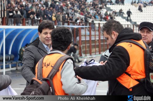درودگر مدیرعامل ملوان در حال توزیع لباس ملوان بین عکاسان و انجام امور تدارکاتچی این تیم