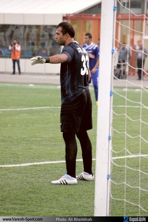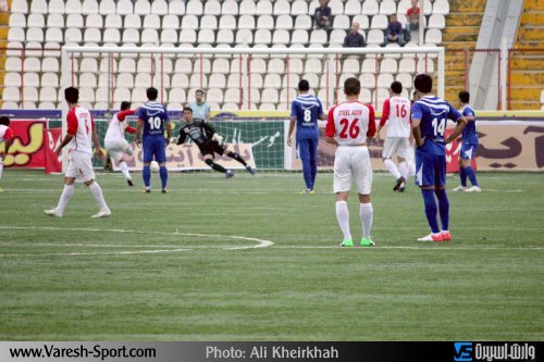 لحظه مهار ضربه پنالتی گهر توسط حسن رودباریان دروازه بان داماش گیلان